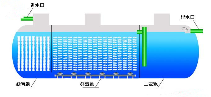 • 一體化污水處理設(shè)備 > 一體化污水處理設(shè)備是將一沉池、I、II級接觸氧化池、二沉池、污泥池集中一體的設(shè)備,并在I、II級接觸氧化池中進行鼓風(fēng)曝氣,使接觸氧化法和活性污泥法有效的結(jié)合起來,節(jié)省了找人設(shè)計污水處理工藝和做基礎(chǔ)建設(shè)的繁瑣。